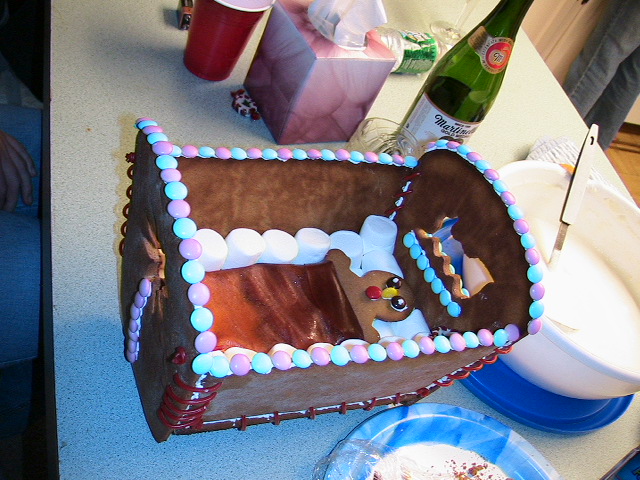 Every year, I build a gingerbread “structure”. Usually a house, but one year, I did a boat. Knowing we would be heading to my parents the day after Christmas (we didn’t find out about her grand mom until that night) and that they would expect to see another creation, I