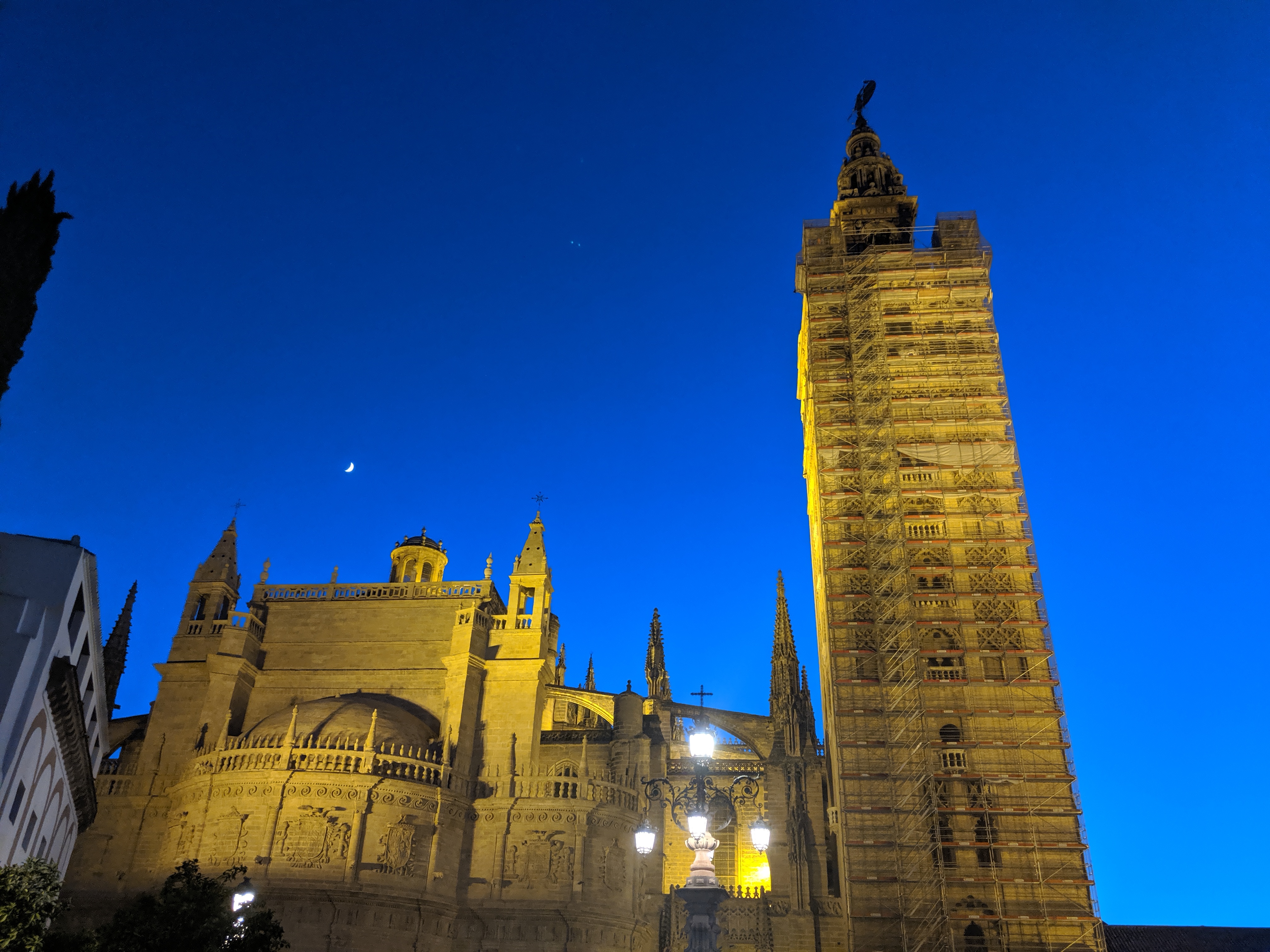 Seville was an interesting setting, a maze of alleys and cafes that seemed to twist and turn their way through the city and then suddenly emerge into these large open plazas, parks and open space. Literally, these alleys at times would be roads to drive on and at other time, a place to hang out and drink a beer on. Driving through this tight maze was stressful and frustrating as we struggled to find our hotel during the day, but at night, once again, when the sun set in Spain the whole world changed and those alleys became…magic. I feel like my mind uses the word magic too much to describe parts of Spain but sometimes there just doesn’t seem to be a better word to capture the feeling of the city of Seville at night. There seemed to be so much there that we could explore, so many things to see so many places to eat. At times it almost seemed like this wonderful world was trying to hide from the light, caught in the dark during the day and bursting into life at night.