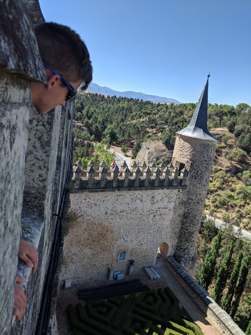 The stairwell up to the towers of the Alcazar were narrow with awkward steps that caused Andrea to decide it was time to take a break. Like the castle in Oropesa, Ben, Matt and I set out for our own adventure. There were many times in the various castles, we would have to push against the wall to let someone pass to get up the stairs or down. Despite the claustrophobic conditions, there was always a “Gracias”, “Merci” or “Thank you” from the different people trying to squeeze on by.