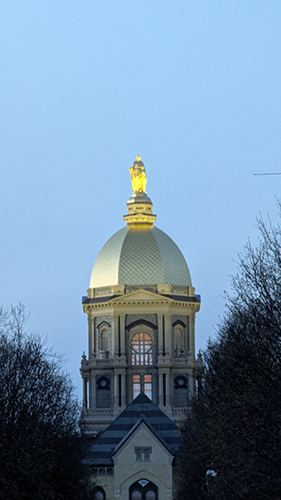 After the tour and some sleep, we headed back to Notre Dame on Sunday. By then my head was spinning. After meeting up with Chuck and my friend Bill, we went into the library. I am not even going to get into it. From the top floor of this building, you could see the campus. It was absolutely beautiful. You could see for a couple of miles. The leaves were just changing, and the sun was starting to set. The famous gold dome was set against all this, and I was just in awe. It was just simply unbelievable.
